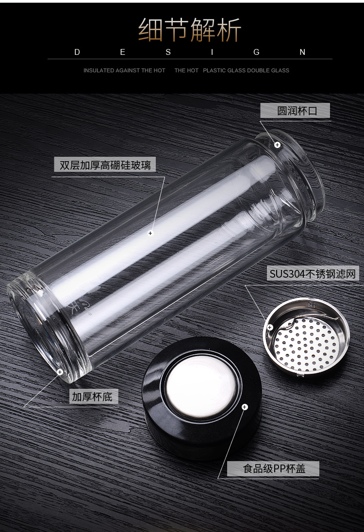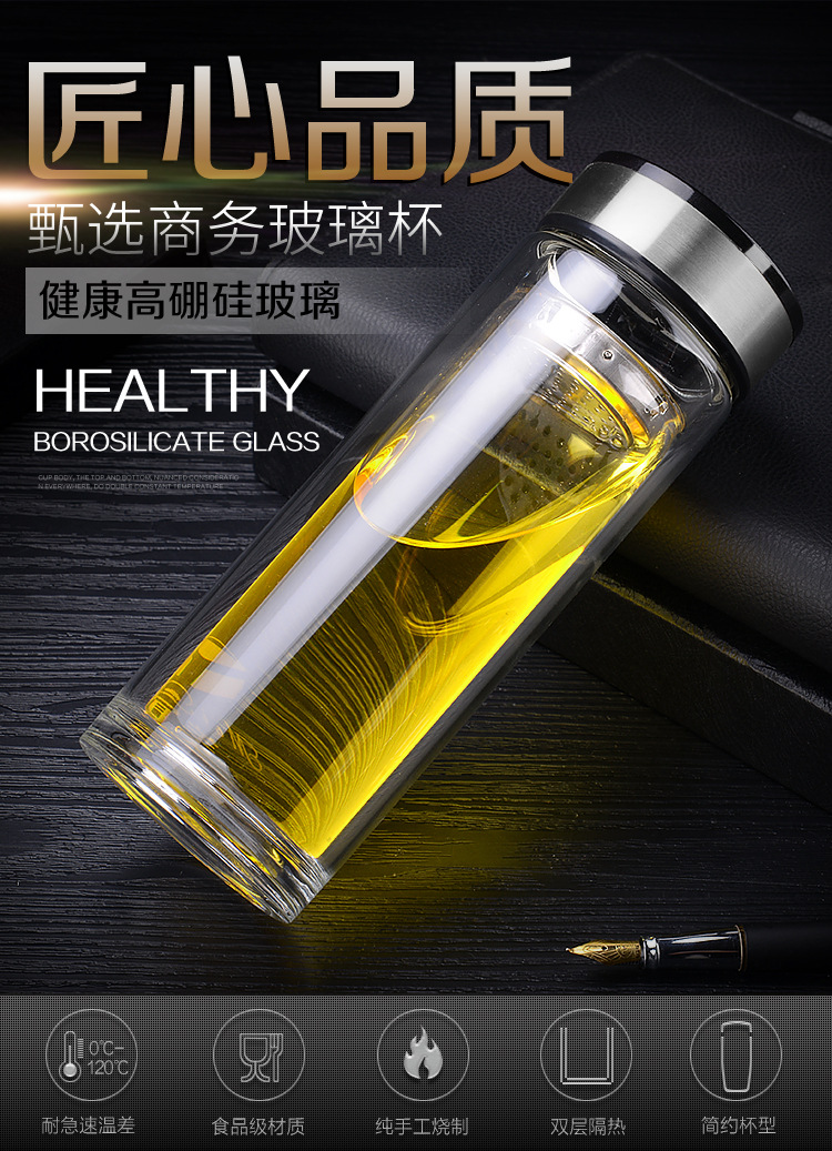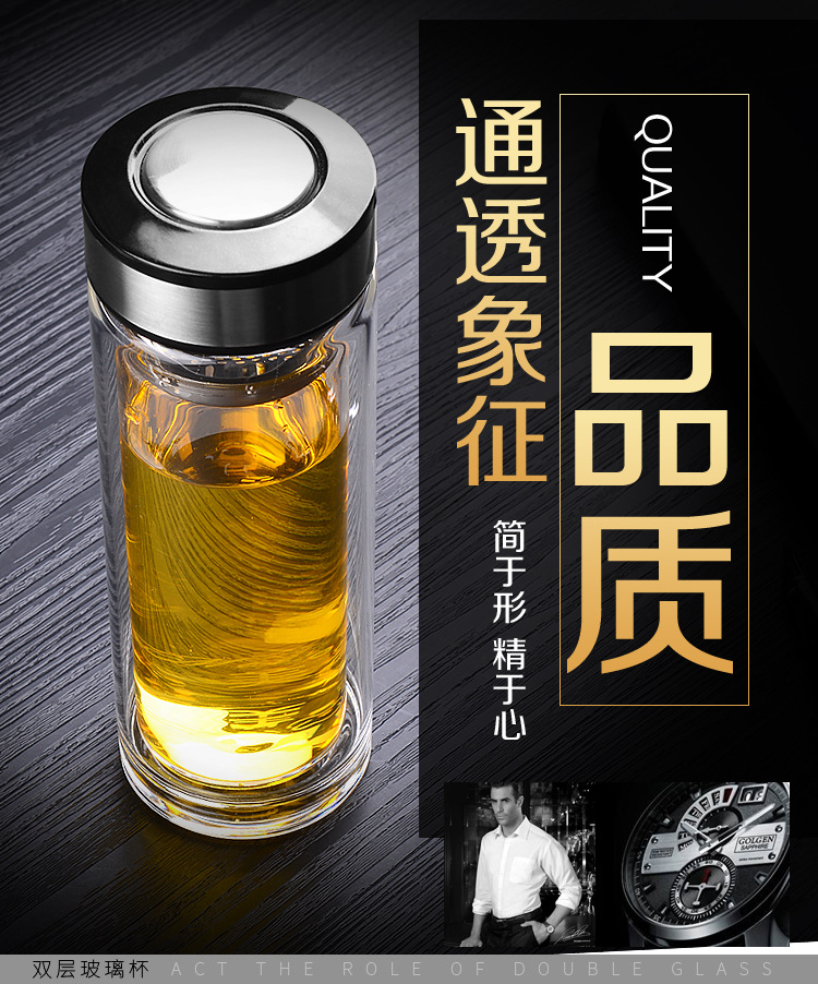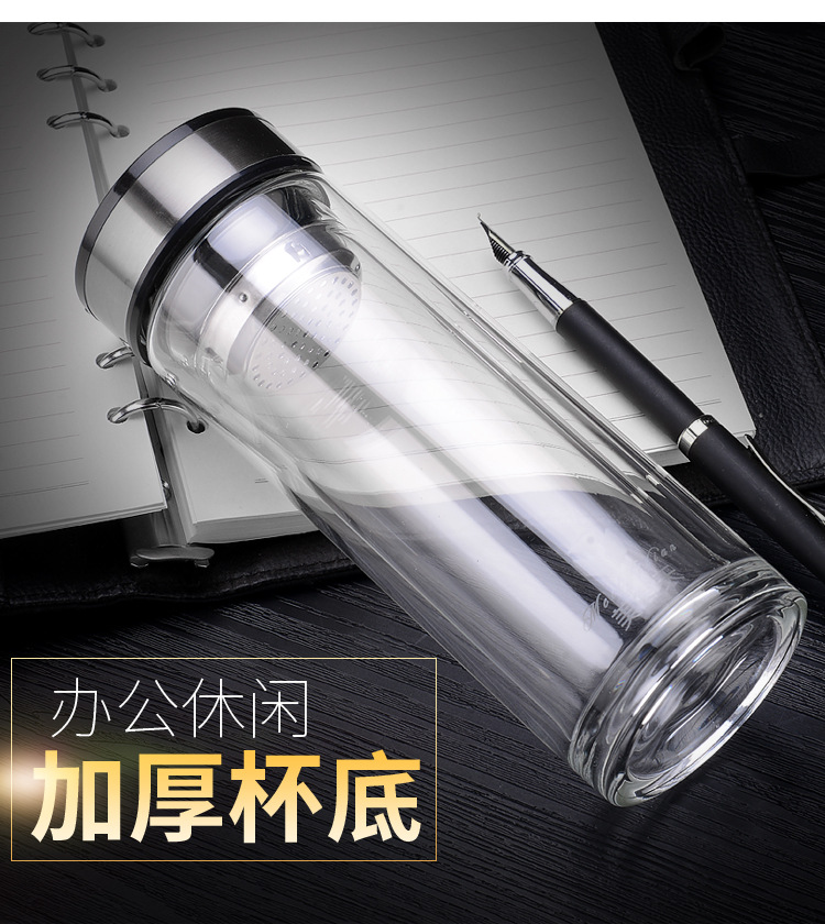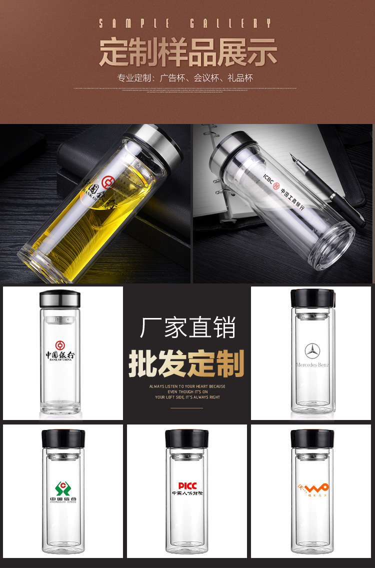 雙層厚底透明玻璃杯商務(wù)禮品高硼硅水杯廣告杯批發(fā)定制logo