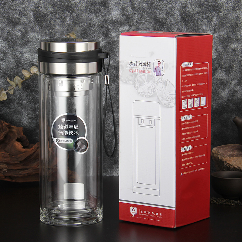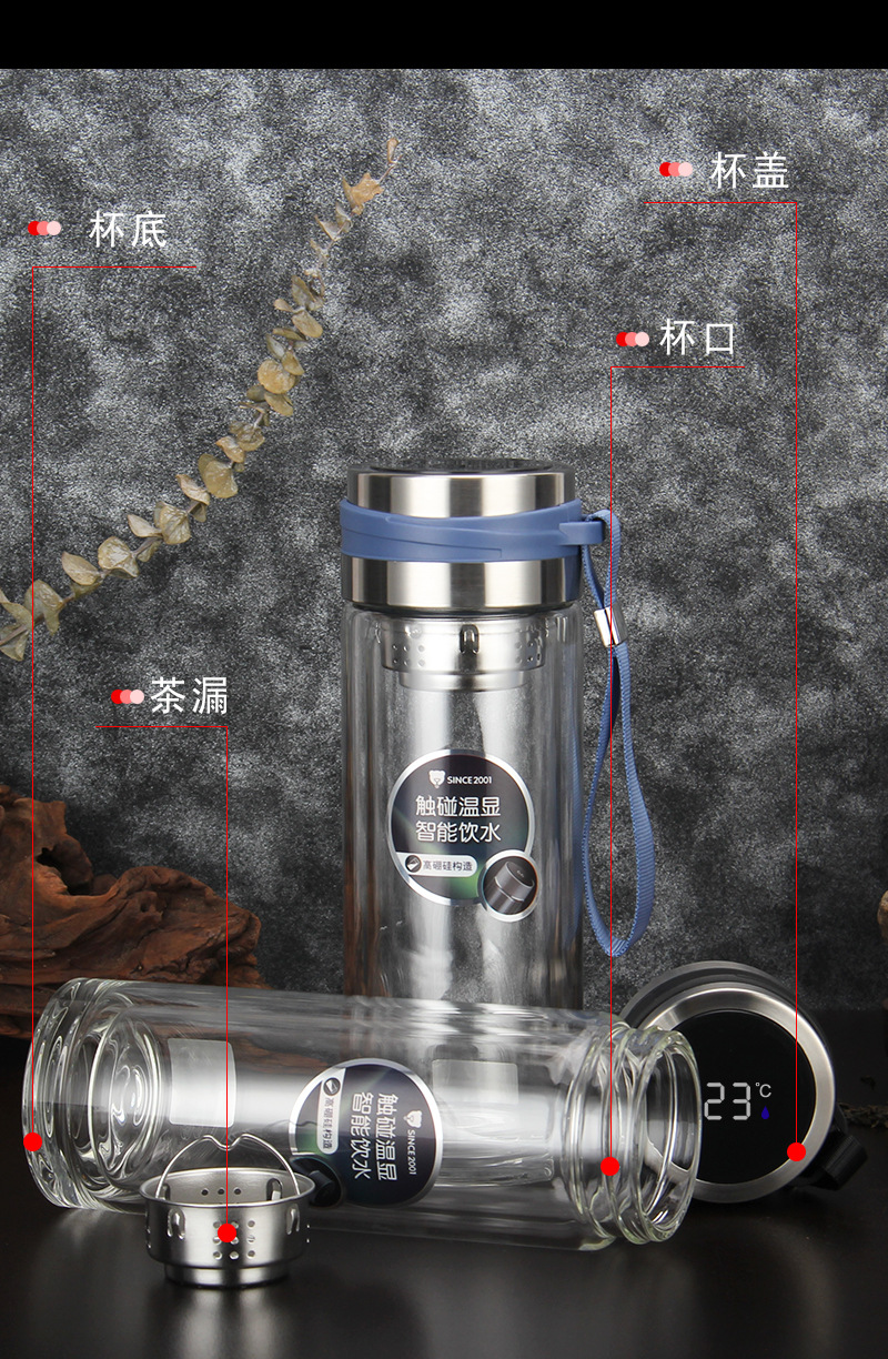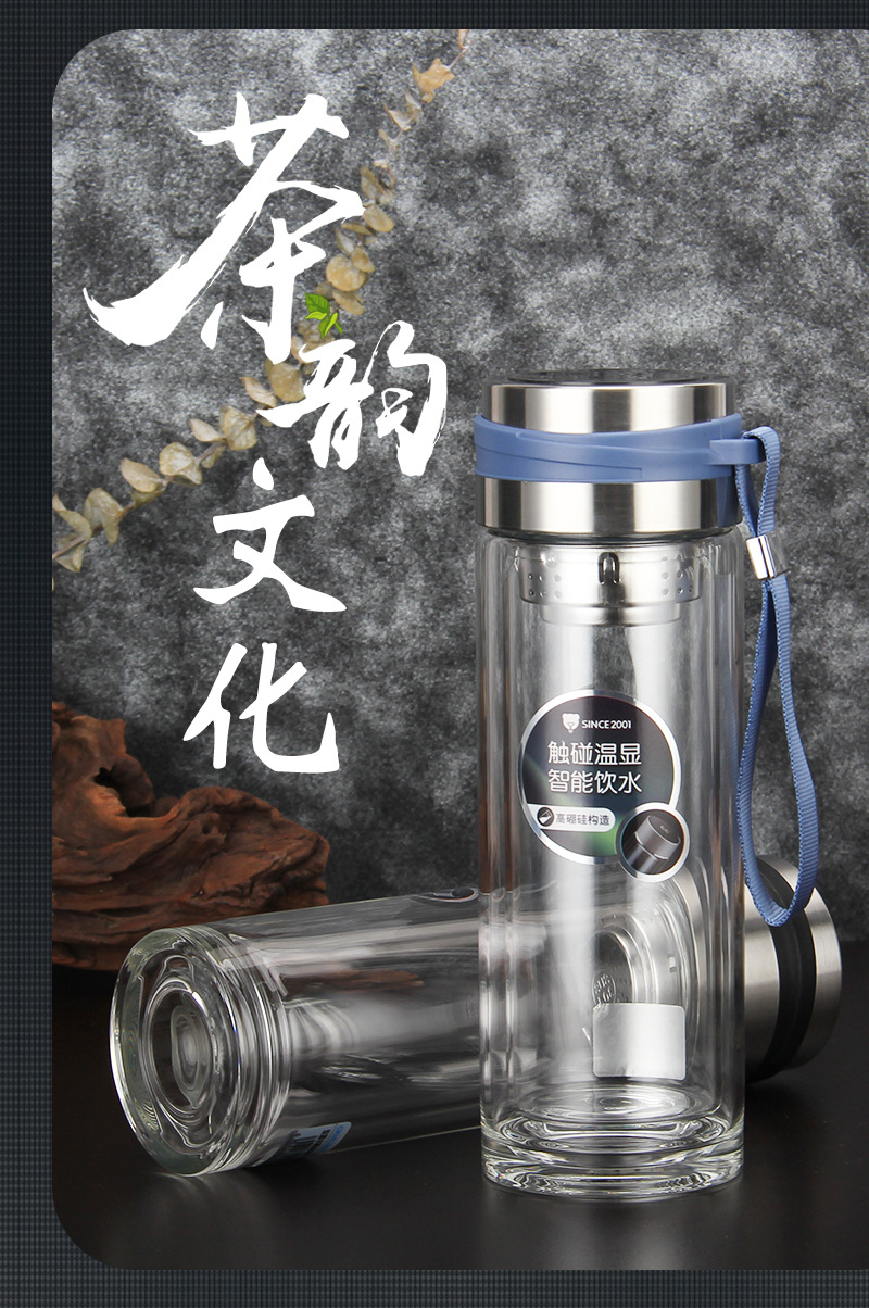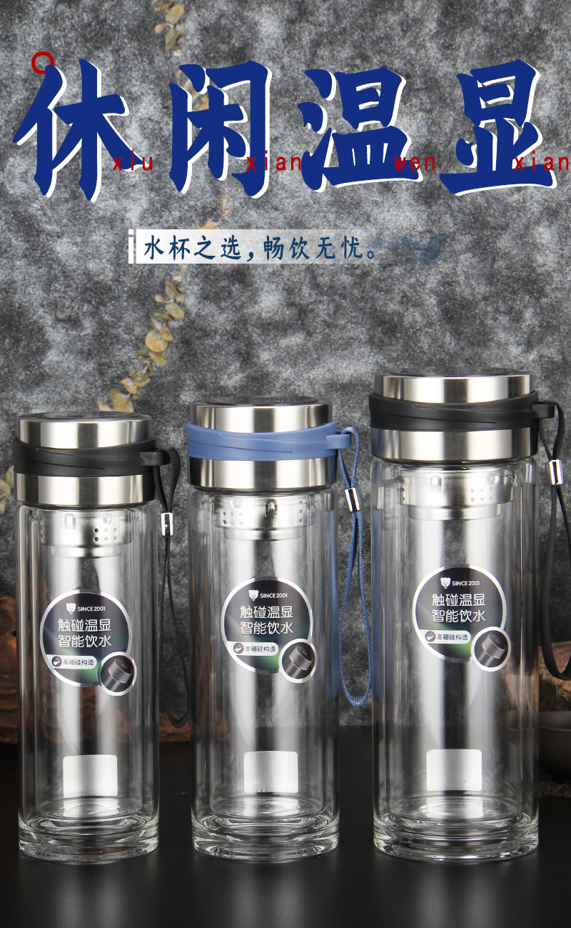 高硼硅雙層溫度顯示提繩玻璃同學(xué)會議團(tuán)建獎品促銷禮品杯