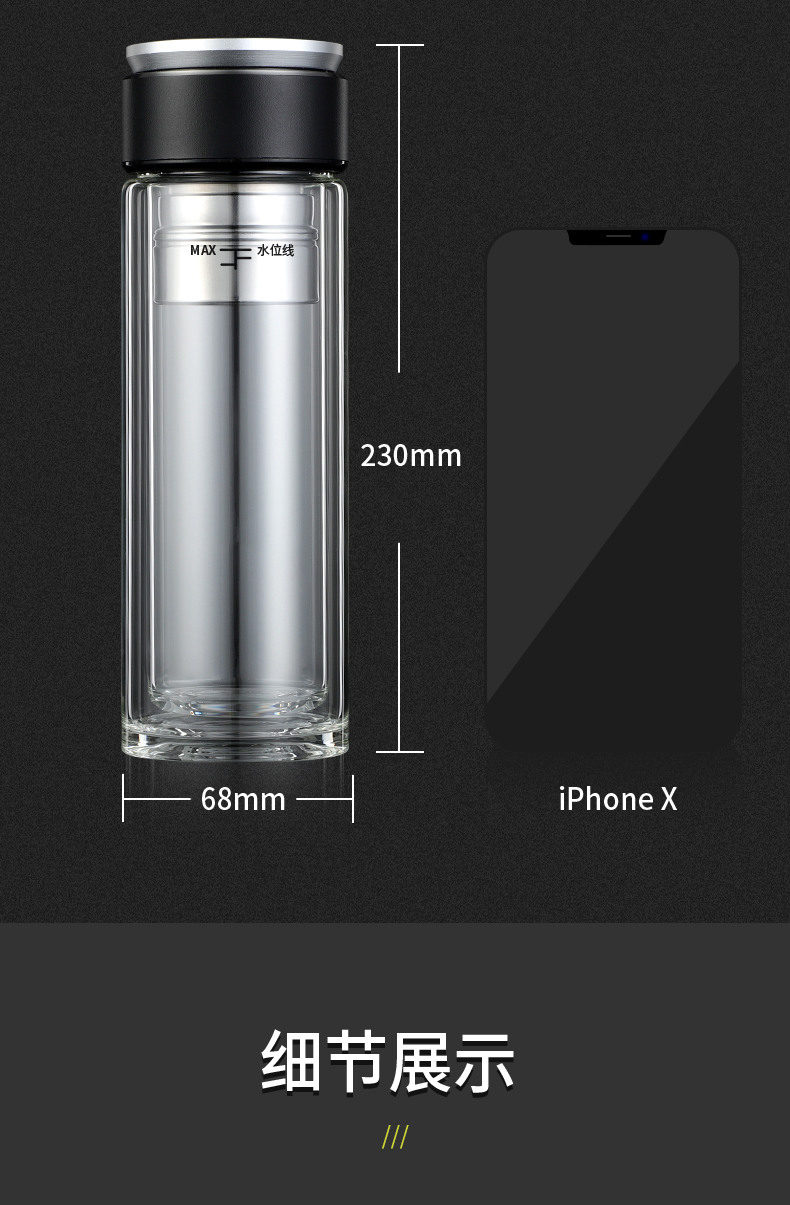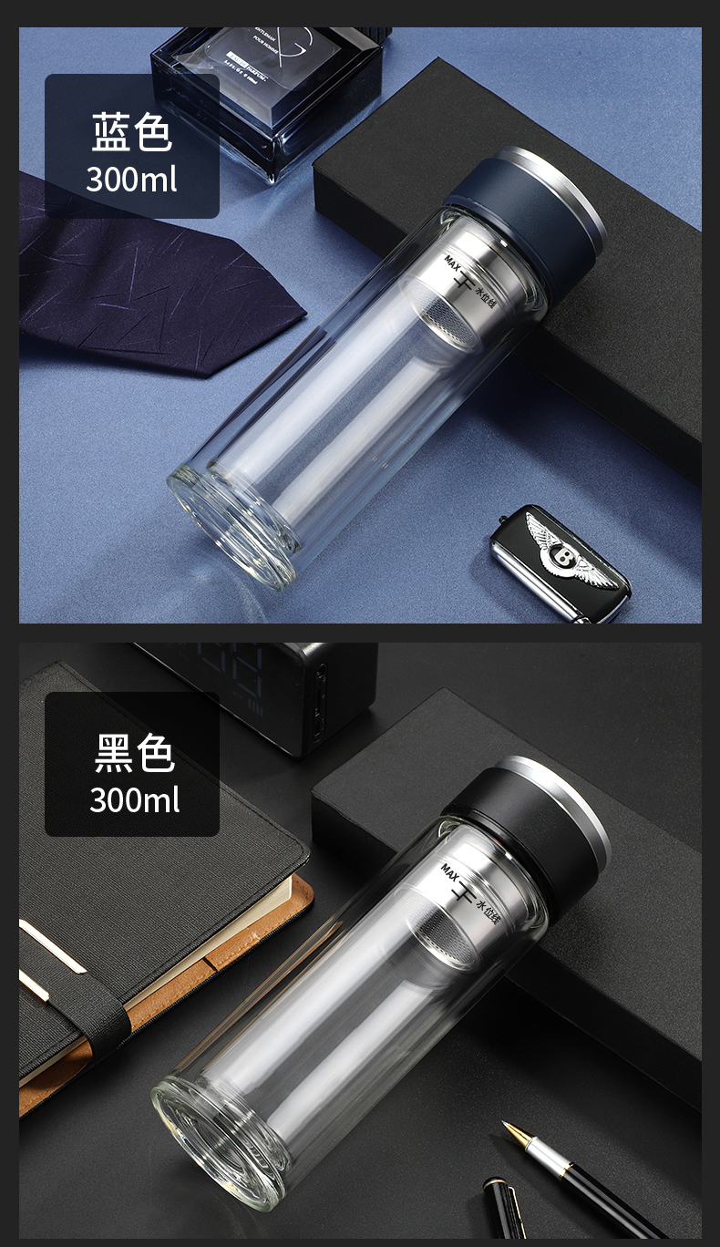 高檔智能磁吸茶水分離泡茶杯雙層透明便攜隔熱水杯水晶商務玻璃杯