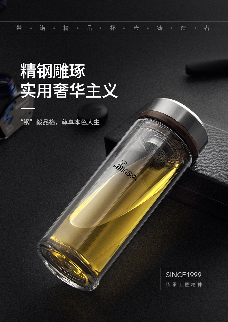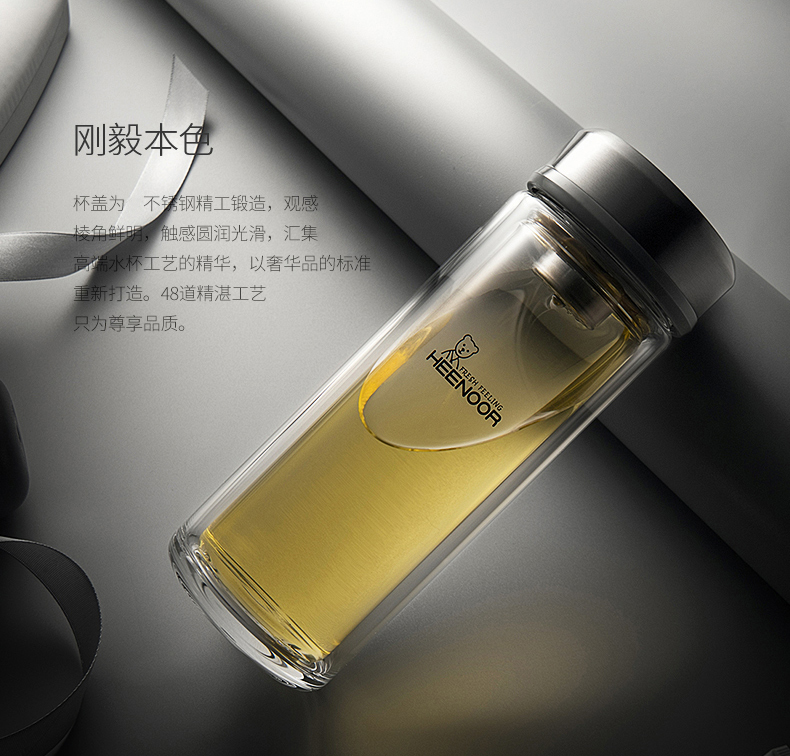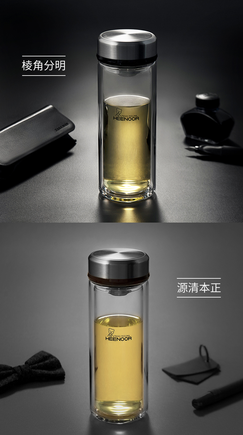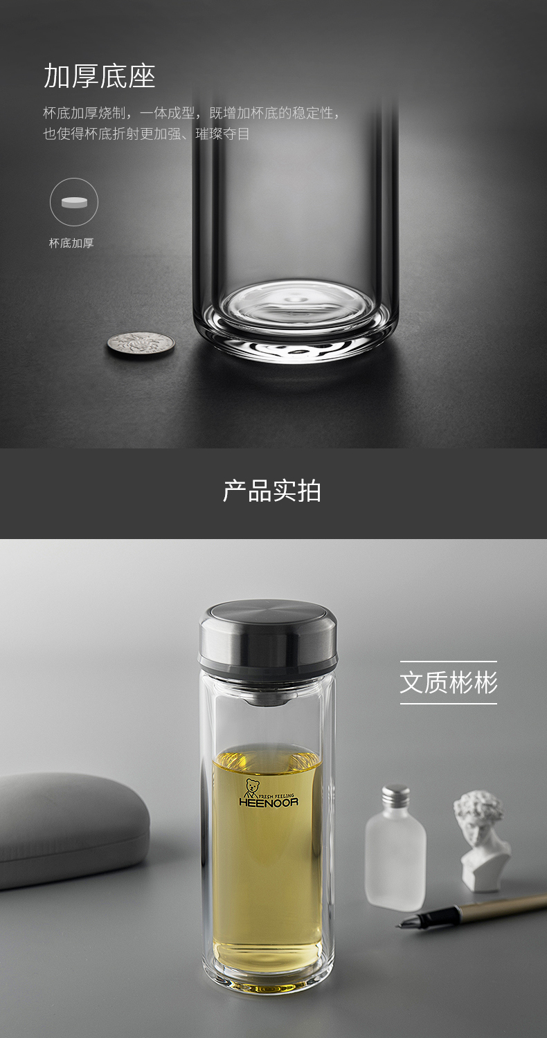 希諾雙層玻璃杯男士辦公客廳家用透明簡約杯子過濾加厚泡茶杯定制