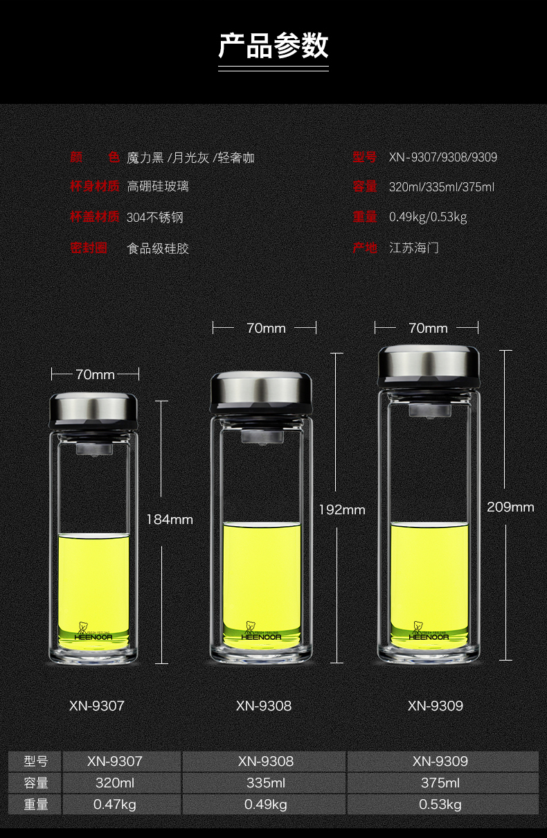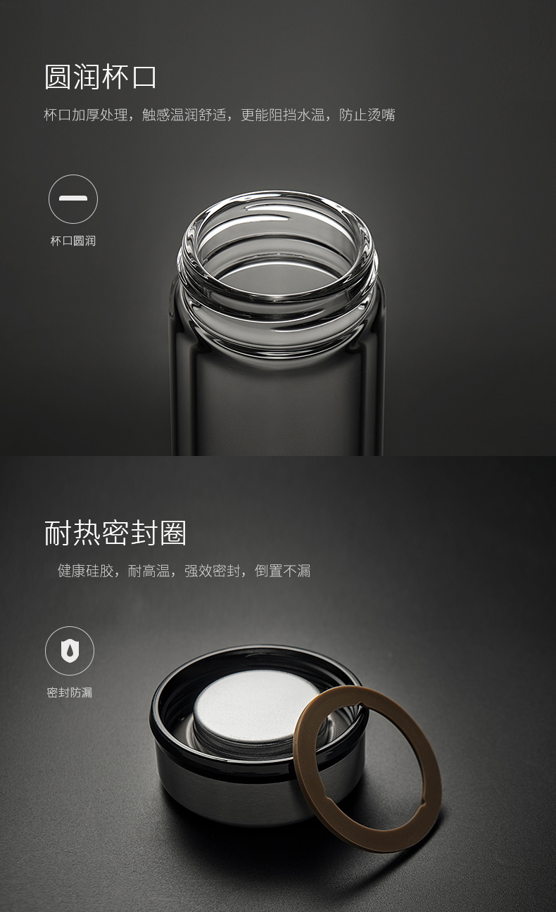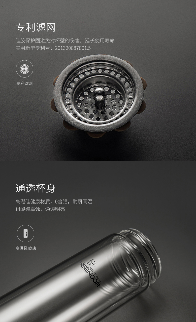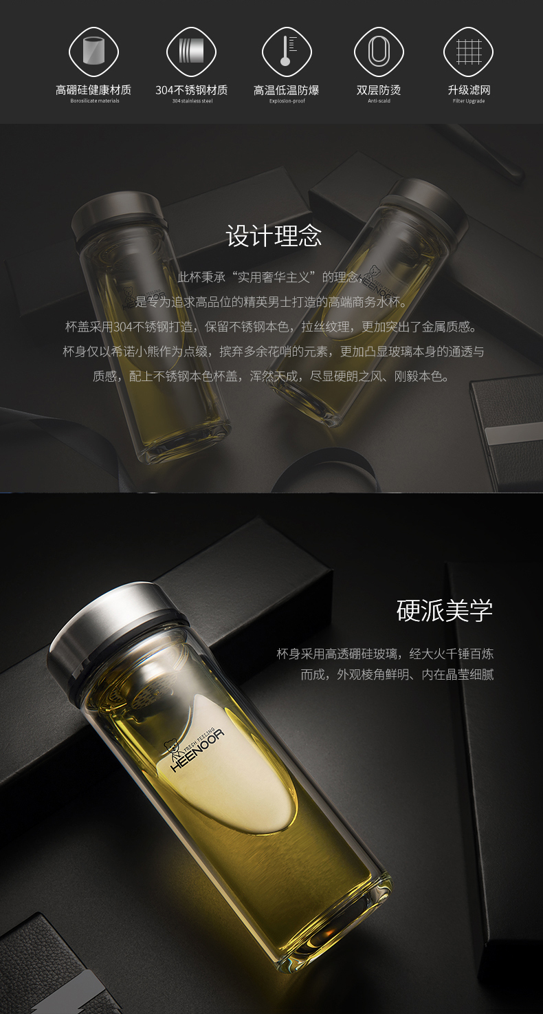 希諾雙層玻璃杯男士辦公客廳家用透明簡約杯子過濾加厚泡茶杯定制