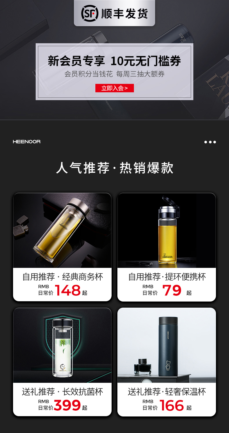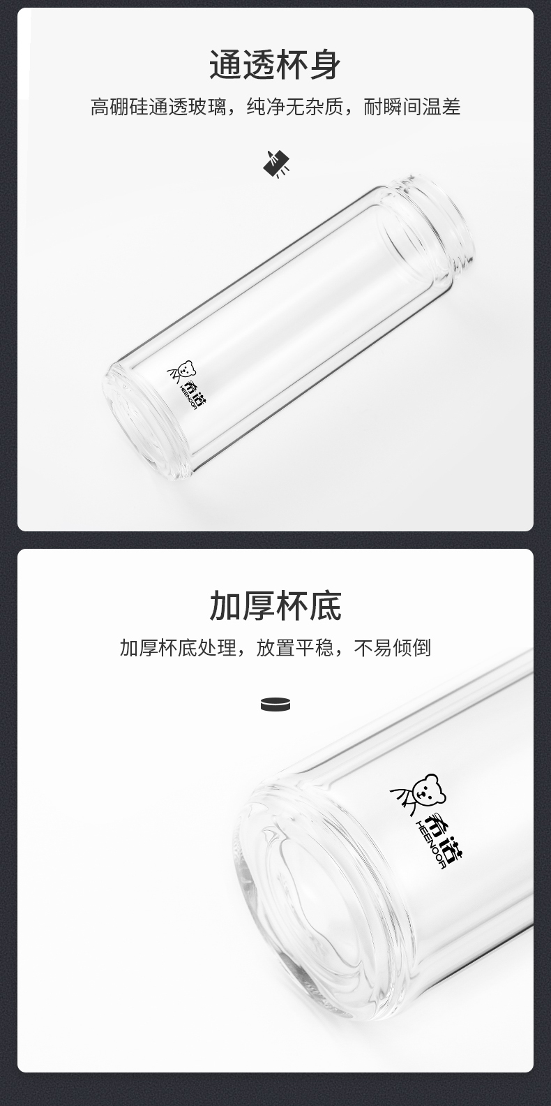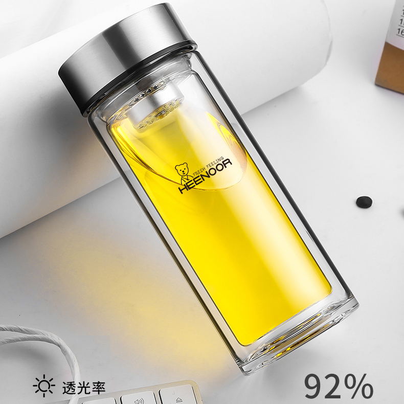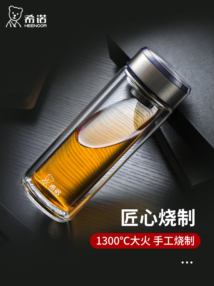 希諾雙層玻璃杯茶水分離水杯男家用透明過濾泡茶杯子高檔送禮商務(wù)