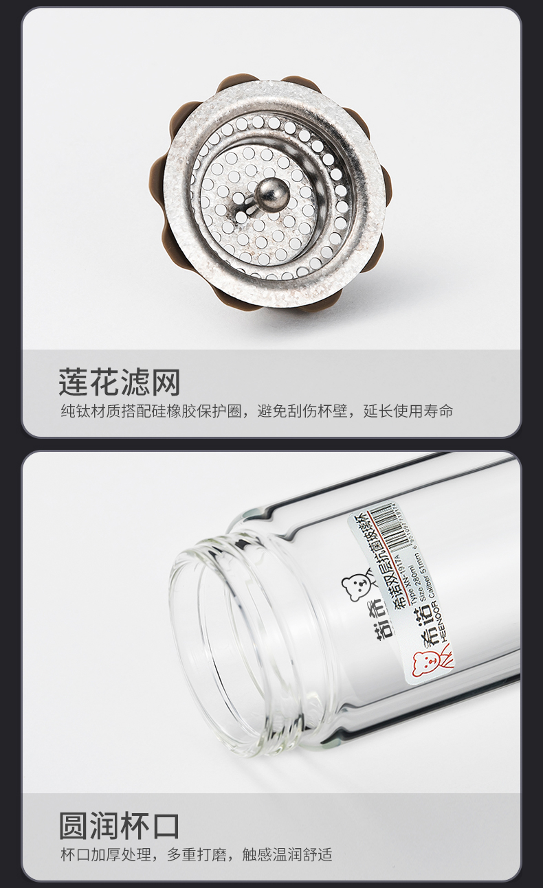 希諾雙層抗菌玻璃杯隔熱男女士高檔車載水杯便攜杯子帶濾網茶杯