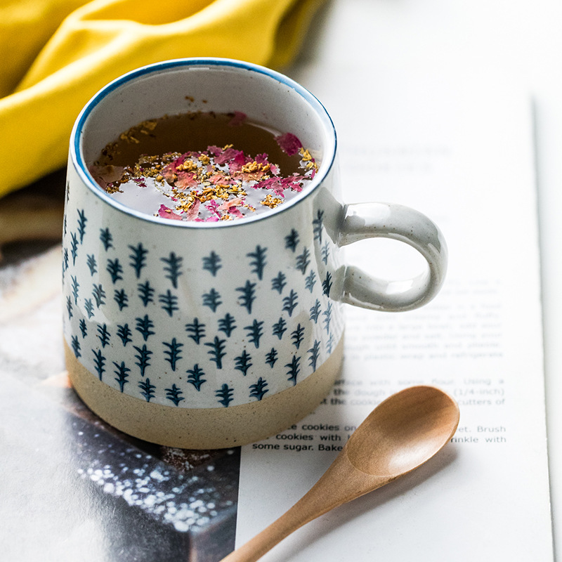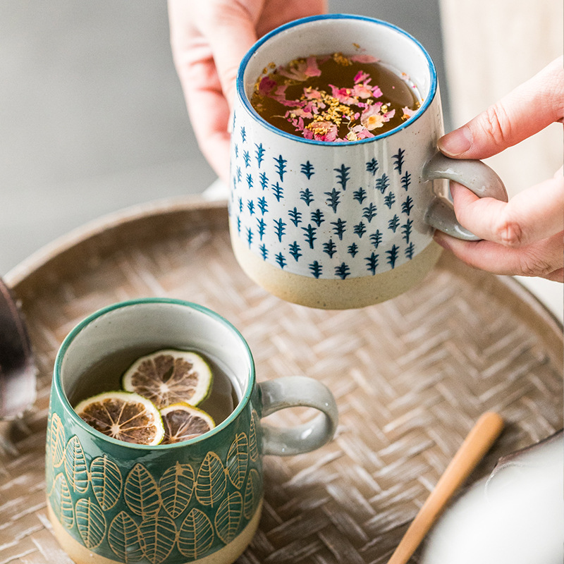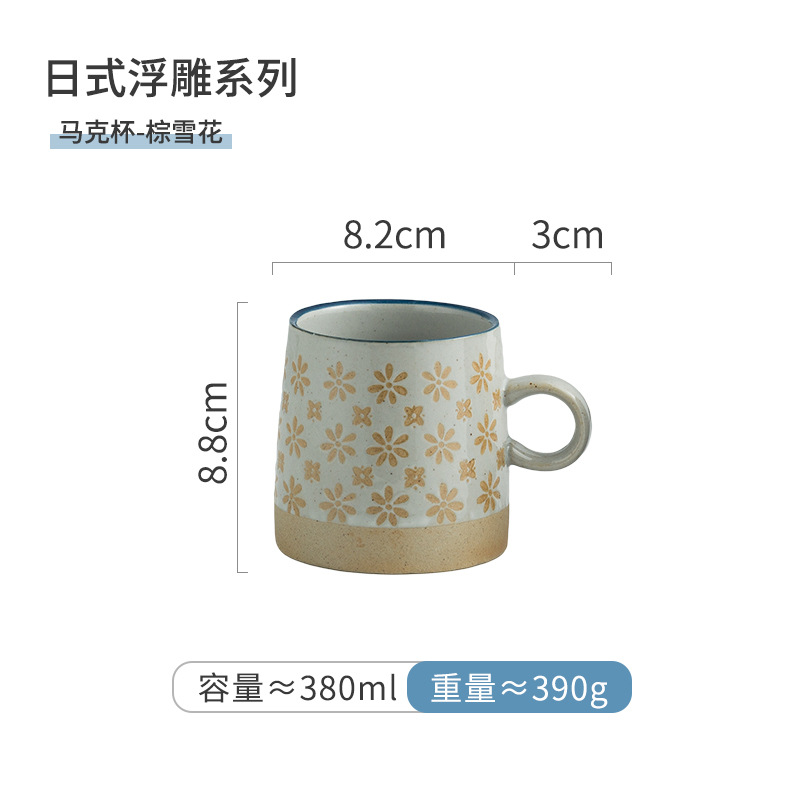 華孚復古咖啡杯陶瓷杯日式田園茶杯水杯浮雕粗陶馬克杯情侶杯送禮